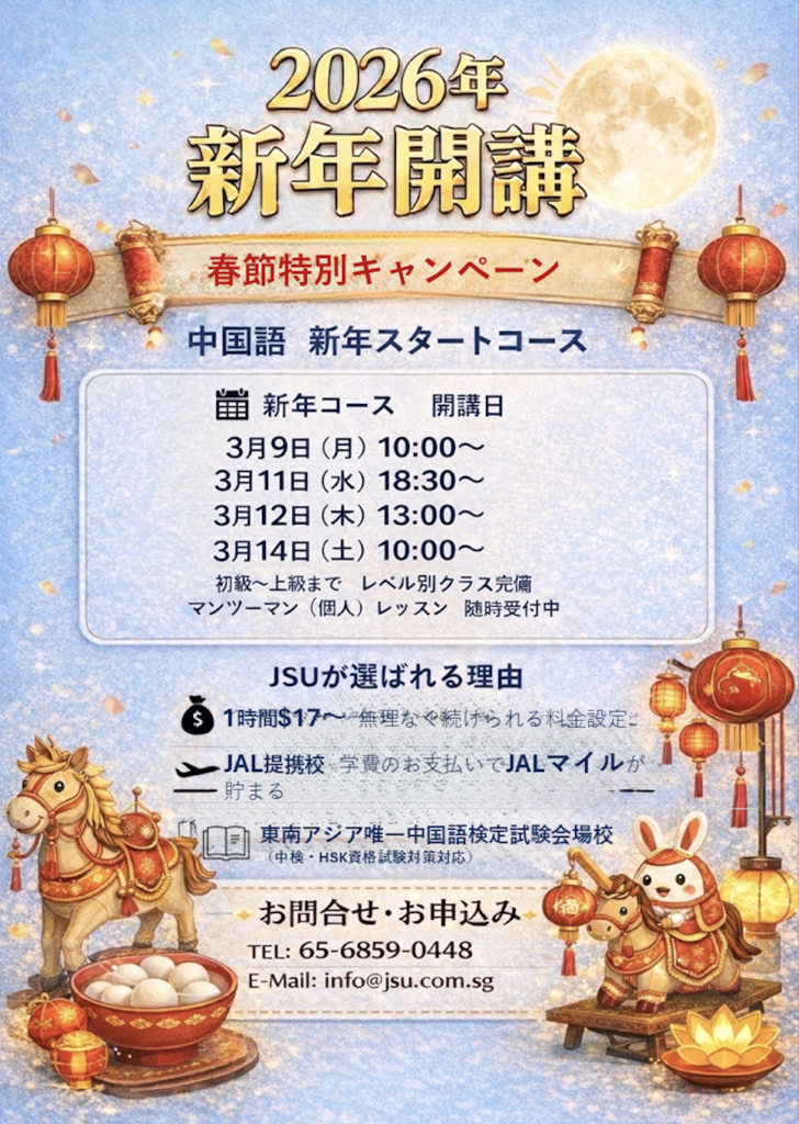 シンガポールで中国語を習いたい方、歴史あるJSUは本当にお勧めです。グループでも個人でも多忙なスケジュールの調整も可能です。是非クラスを覗いてみてください。