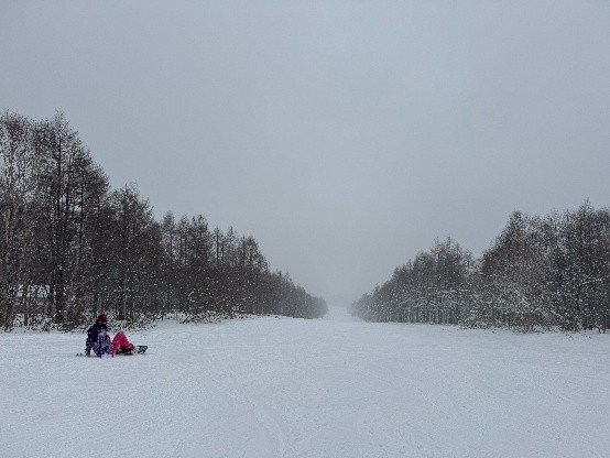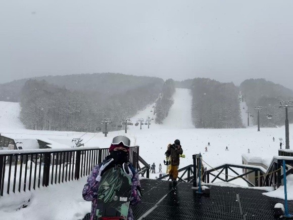 我们在福岛滑雪。我是第一次滑雪,我觉得我能滑雪,因为我有运动习惯。