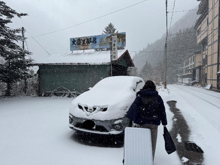 然后我们又回到了肘折温泉。因为那儿是深山,所以经常下雪。